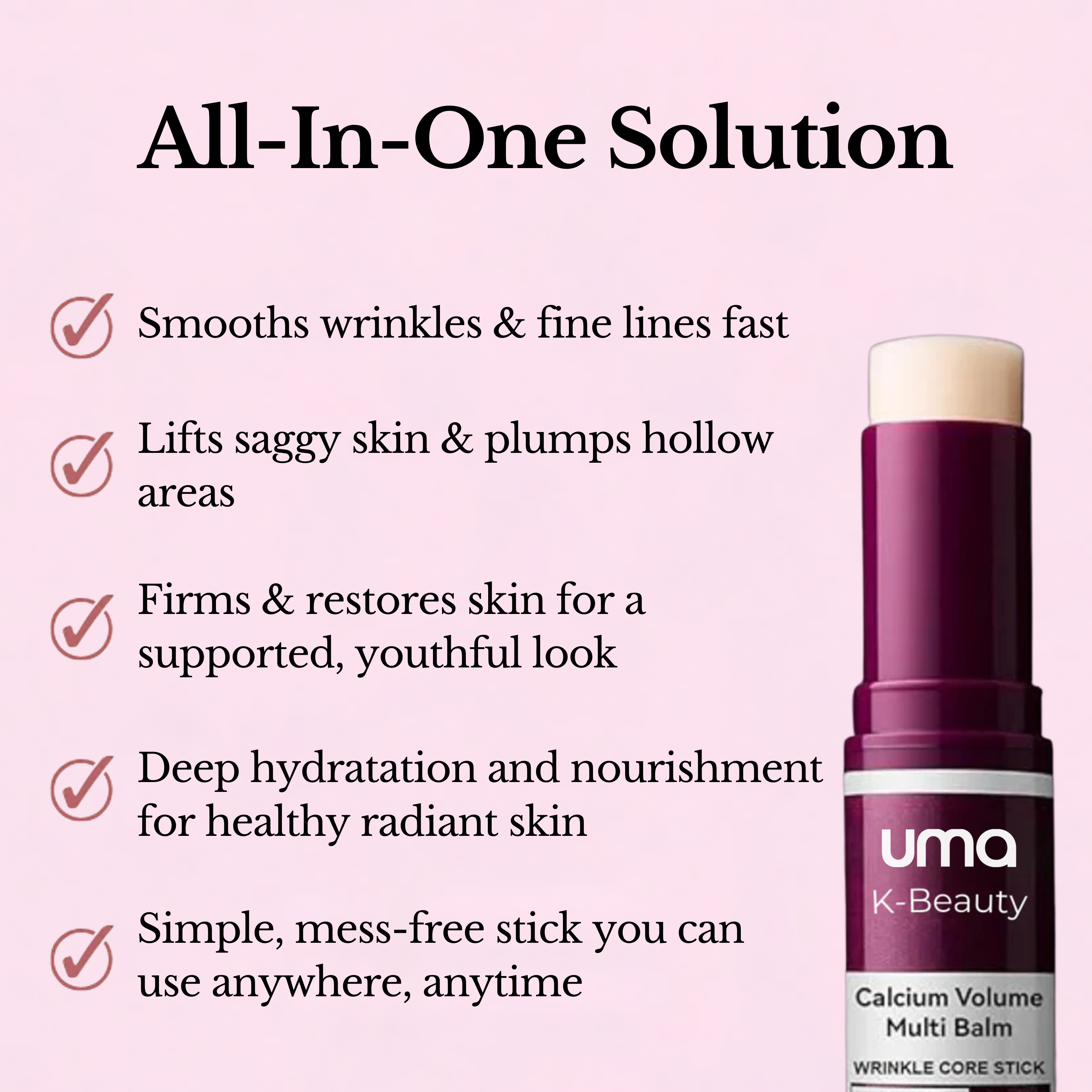This pocket-sized balm targets those zones in seconds. One glide delivers a surge of Calcium to reinforce skin’s framework, Adenosine to visibly fill lines, and Collagen + Elastin to bring back bounce. Under-eyes look less sunken, smile lines appear smoother, and the upper-lip “barcode” looks softened, without greasiness or residue.